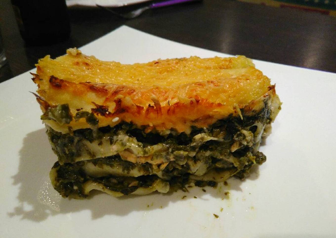 Lasagnes épinards et saumon, béchamel au chèvre