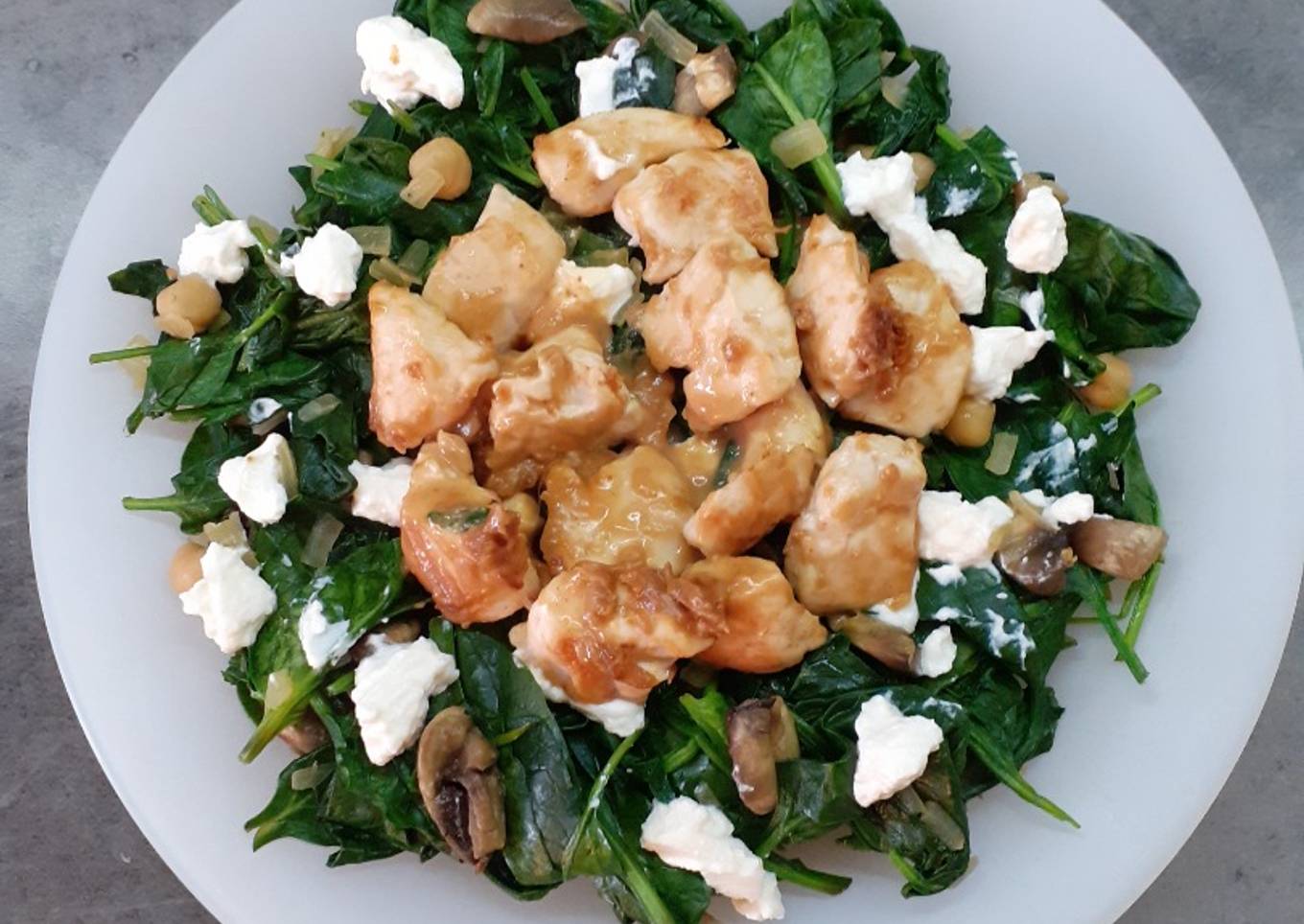 Aiguillettes de poulet sauce cacahuète 🍗🥜, et épinards à la ricotta 🍃