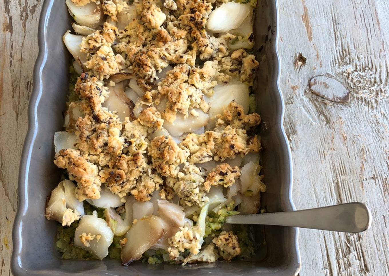 Crumble de cabillaud et courgettes