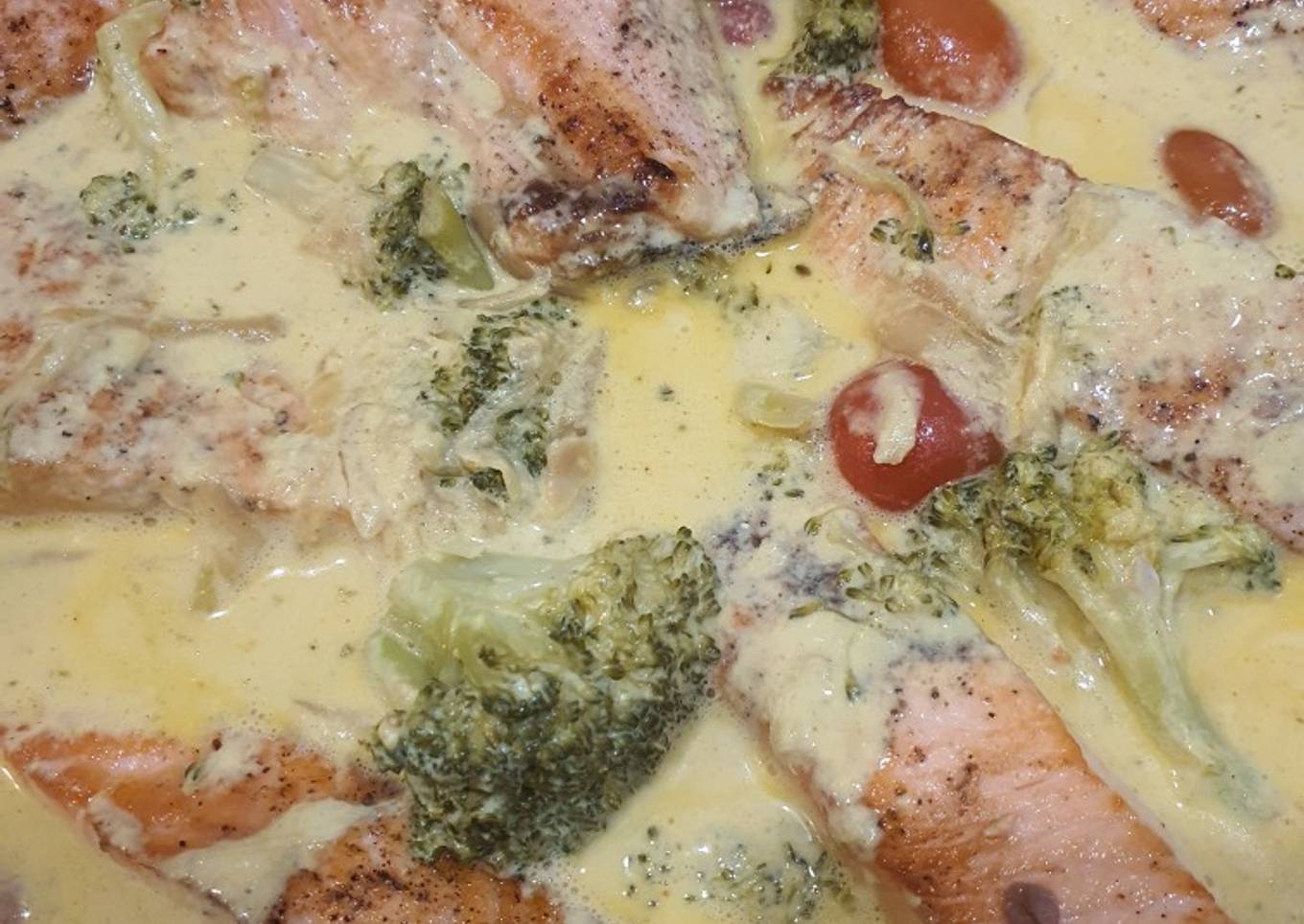 Instructions to make to make Saumon brocoli tomate cerise sauce parmesan