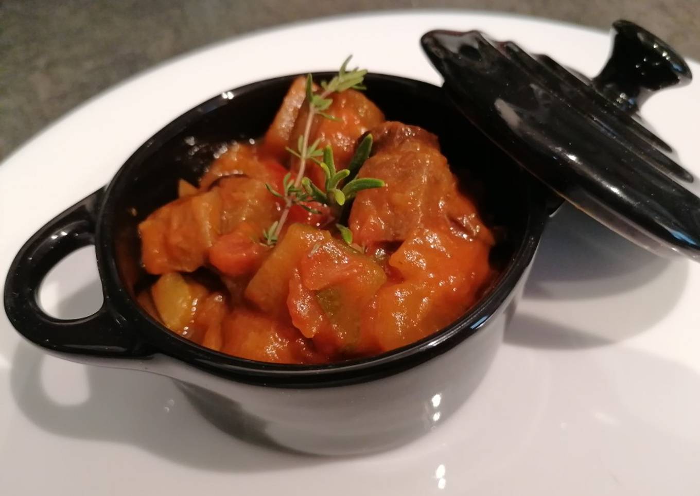 - Ajoutez le reste des ingrédients avec un verre d'eau et 2 cuillères à soupe de concentré de tomate., laissez mijoter à couvert 30 mins minimum, personnellement j'aime bien la faire mijoter longtemps dans le jus, en réduisant il épaissiera et les légumes seront comme confits, n'hésitez pas à ajoutez un peu d'eau et concentré de tomate si nécessaire.