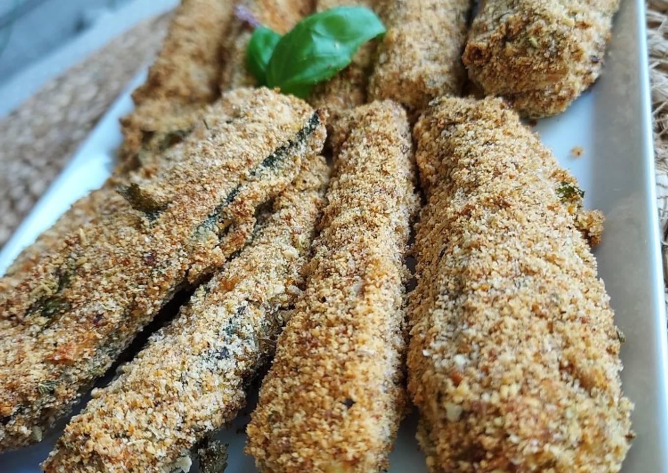 Un apéro original et savoureux, de délicieux bâtonnets croquants de courgettes enrobés de chapelure aromatisée aux différentes épices et basilic et au parmesan , le tout passé au four, un apéritif léger qui régalera toute la famille aussi pour les vegans.