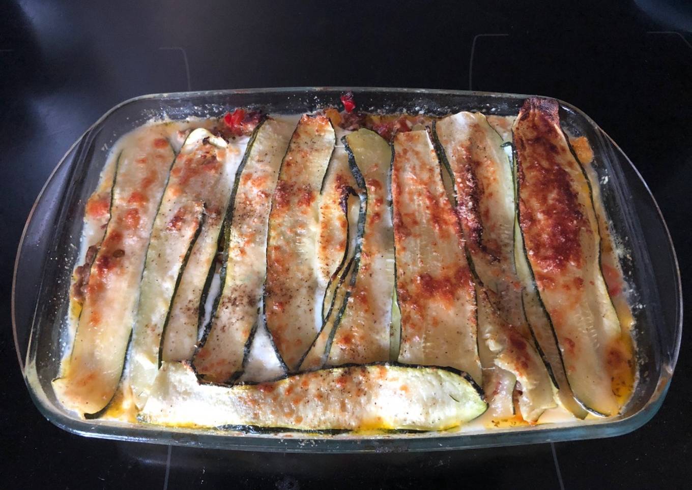 - Déposez les courgettes dans un plat à four huilé. couvrez de préparation à la viande. Egouttez et coupez en lamelle la mazzarella, ajouter dans le plat. Renouvelez l'opération.