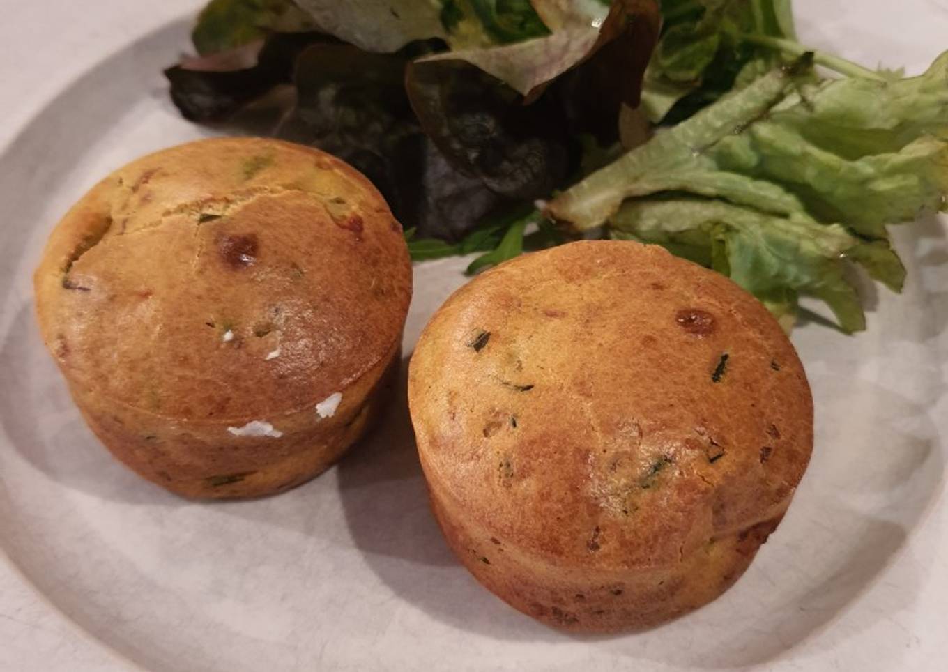 Muffins curry courgettes/chèvre/lardons