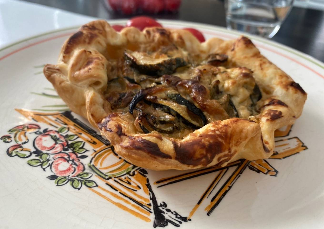 Steps to make to make Tarte fine chèvre menthe courgettes