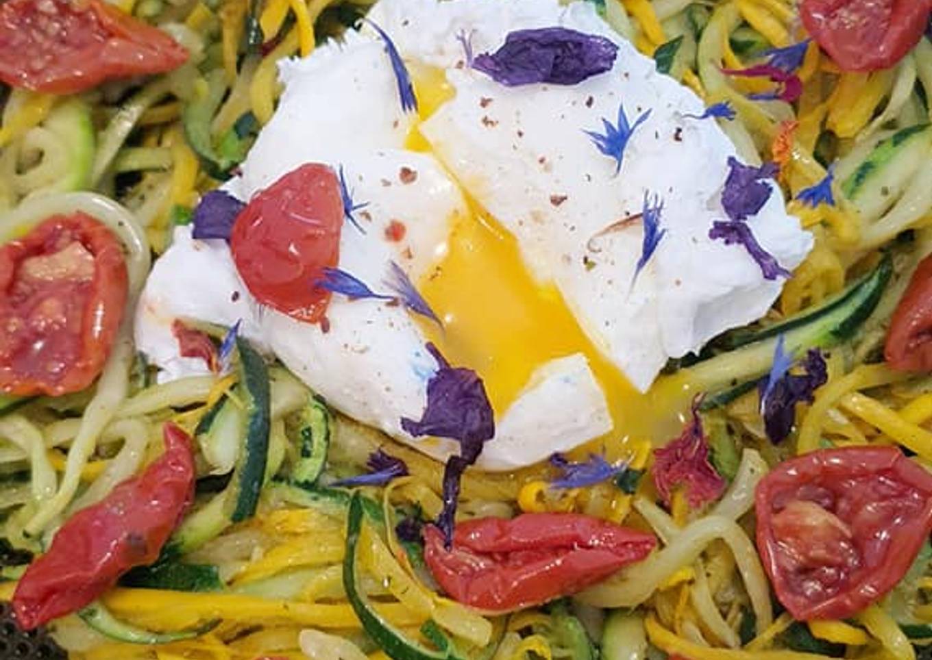 Spaghettis de Courgettes colorées et son Oeuf poché