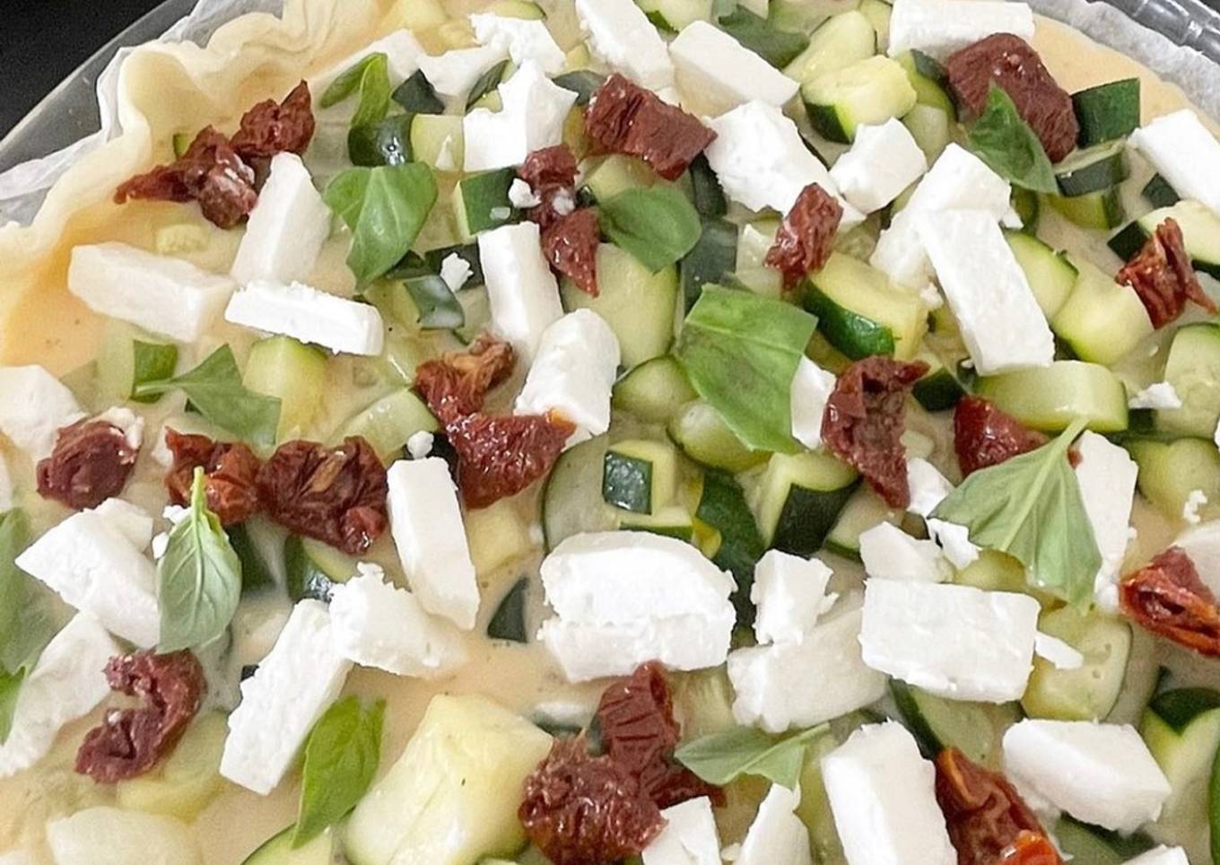Steps to make to make Tarte courgettes tomates séchées fêta